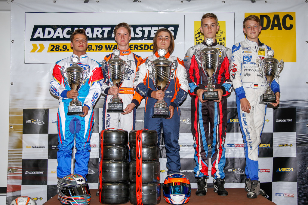 Für Titelanwärter Ben Dörr begann das Finalwochenende perfekt. Der Rookie holte die Bestzeit im Qualifying und siegte auch in den Heats. Abwechslungsreicher wurde es in den Wertungsläufen. Luca Griggs (Dagham/Kartshop Ampfing) aus Groß-Britannien holte sich direkt nach dem Start zum ersten Finale die Führung und baute seine Position im Rennverlauf weiter aus. Auch die Ränge zwei und drei waren mit Dörr und Kas Haverkort (Heemserveen/Kartshop Ampfing) schon früh vergeben. Im Verfolgerfeld war hingegen bis zum Ende Spannung drin. Alexander Tauscher (Mitterfels/Junior Team75) wurde letztlich vor Jan Marschalkowski (Inning/TB Racing Team) vierter. Letzterer lieferte sich ein Fotofinish mit seinem Teamkollegen Hugo Sasse (Aschersleben).