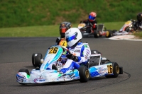 Als Solist ging Jonas Wagner bei den Bambini ins Rennen. Nach dem Zeittraining lag der Youngster im 34-köpfigen Fahrerfeld auf der 22. Position. Im Laufe der Qualifikationsrennen fuhr Jonas noch weiter nach vorne und sicherte sich mit Rang 17 eine solide Ausgangslage für das erste Finalrennen. Bedingt durch einen verlorenen Spoiler waren die Chancen auf eine gute Platzierung aber schon frühzeitig verloren. Im zweiten Durchgang zeigte der junge Kartfahrer dennoch eine gute Leistung und fuhr von Position 25 bis auf Platz 19 vor.