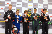 Nach einem spannenden Finale bei den Jüngsten im ADAC Kart Masters hatte Marc Schmitz (Neuwied/Maxim Racing Sport) allen Grund zur Freude. Der Rookie behielt im Prokart Raceland eine reine Weste und sicherte sich mit einem knappen Doppelsieg in seiner ersten Bambini-Saison den Meistertitel. „Ich kann es gar nicht glauben. Vom Saisonbeginn in Ampfing bis jetzt zum Finale war es immer sehr eng. Ich habe versucht die Konzentration zu halten und bin stolz gewonnen zu haben. Ein großer Dank an mein Team und meine Betreuer für deren Unterstützung“, fasste der Zehnjährige zusammen.