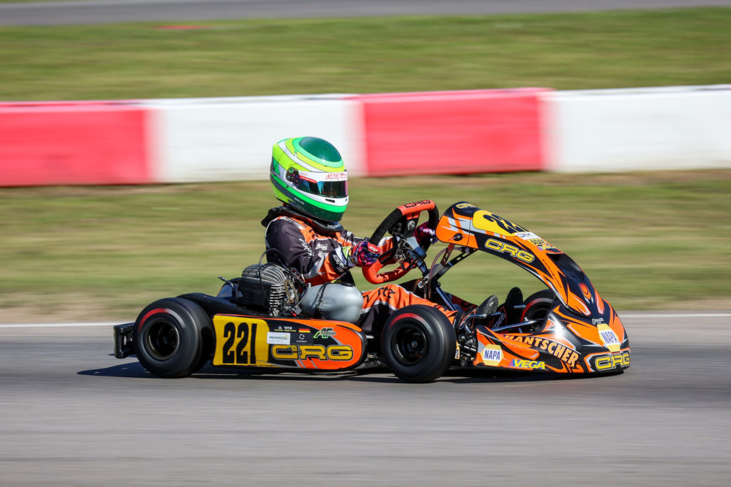 Bereits vor dem Finale in Wackersdorf stand Devin Titz aus Bönen (Kreis Unna) als neuer Champion der Deutschen Mini-Kart-Meisterschaft fest. Doch anstatt den letzten Lauf entspannt anzugehen, krönte der Youngster aus dem Team CRG Holland seine ohnehin schon beeindruckende Saison mit einem weiteren Sieg und damit mit einer perfekten Bilanz: fünf Siege in fünf Finalrennen.