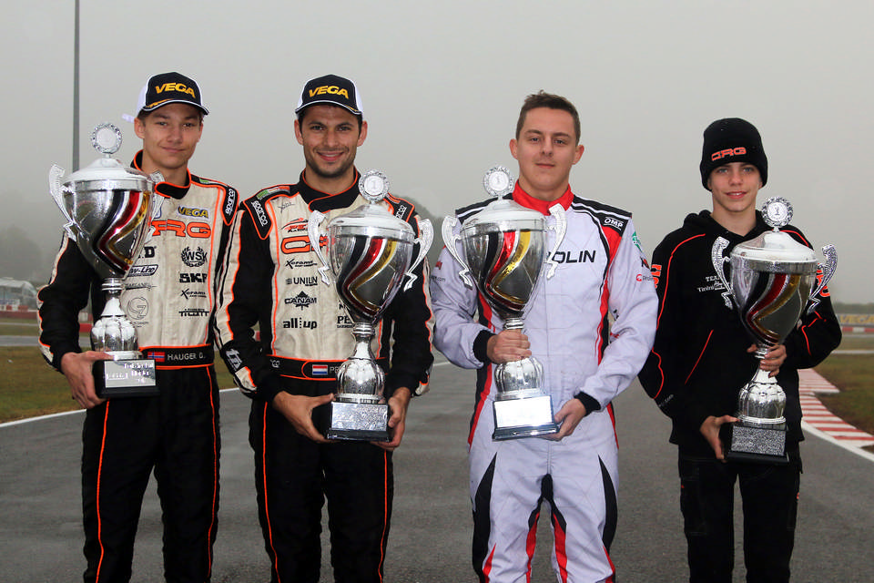 Bei trockenen Bedingungen war Gastfahrer Stefano De Vecchi (Renda Motorsport) am Samstag nicht zu halten. Der Italiener war im Zeittraining und beiden Heats klar der schnellste Fahrer im Feld. Doch in den Finals spielte der FormulaK-Pilot keine Rolle mehr. Im Regen übernahm Jeroen Bos (CRG Holland) das Zepter. Der Niederländer bestritt in Lonato sein letztes Kartrennen und erlebte ein perfektes Ende seiner 20-jährigen Karriere. In beiden Rennen fuhr er einen Vorsprung von mehr als 16 Sekunden heraus und zog ein durchweg positives Fazit: „Schöner hätte mein Abschied aus dem Kartsport nicht sein können. Ich bin nun 20 Jahre Kart gefahren und hatte eine tolle Zeit. Der Doppelsieg und Rang drei in der Meisterschaft machen mich sehr glücklich.“
