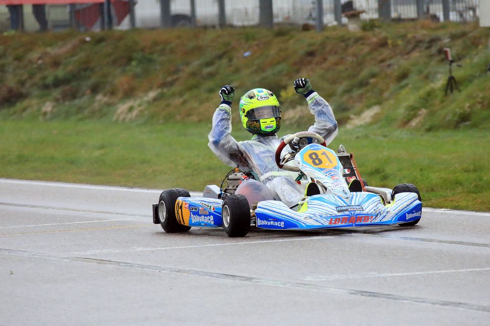 Doch mit einem perfekten Start preschte Junior nach dem Start zum ersten Finale an die Spitze des Feldes. Zu Beginn sah es nach einer dominanten Vorstellung des Tony-Kart-Piloten aus, mit wachsender Rundenzahl büßte er jedoch an Performance ein. In einem wahren Krimi zogen Jarno Opmeer, Bard Verkroost (Mantfoort Motorsport), Juan Correa (Energy Corse) und sein härtester Meisterschaftskontrahenten David Beckmann an ihm vorbei. Während die ersten vier ruhig ihr Rennen fuhren, musste Junior weiter auf seine Verfolger achten. In der letzten Runde hingen ihm gleich sechs Fahrer im Nacken, beim Fallen der Zielflagge verteidigte er aber den fünften Platz. Erster Verfolger war Michael Kuiper (Keijzer Racing) vor Maximilian Fewtrell (Ricky Flynn Motorsport), Logan Sargeant, Bent Viscaal (CRG Holland) und Lirim Zendeli (KSM Racing Team). Seine Titelambitionen aufgeben musste Enaam Ahmed (Ricky Flynn Motorsport), noch in der Einführungsrunde schied er mit einem technischen Defekt aus.