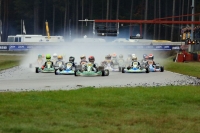 Das erste Finale der Schaltkarts begann turbulent. Auf nasser Strecke hatten die Piloten alle Hände voll zu tun ihre Karts auf Kurs zu halten. Doch schon nach wenigen Runden sortierte sich das Feld – an der Spitze lag Jorrit Pex. Mit einer souveränen Vorstellung löste er sich von seinen Verfolgern und feierte seinen zweiten Saisonsieg. „Ich bin froh, dass wir auch im nassen vorne mit fahren“, freute sich Pex nach dem Rennen. Als Zweiter hielt der Finne Simo Puhakka die Meisterschaft weiter offen und blickte gespannt dem letzten Rennen entgegen: „Der Bessere soll am Ende gewinnen. Unser Paket stimmt, daher bin ich sehr zuversichtlich.“ Ein toller dritter Platz ging an Verdi Geurts (Solgat Motorsport) gefolgt von Marijn Kremers. Guust Specken (PDB Racing Team) komplettierte die Top-Fünf vor den besten Deutschen Michele Di Martino (Energy Germany) und Maik Siebecke (SRP Racing Team). Als Achter sah Finn Kooijman (CRG Holland) gefolgt von Pepijn Steemann (CRG Holland) und Tom Lorkowski (MAXIM-Recycling-Racing-Sports) die Zielflagge. Ein Rennen zum Vergessen erlebte Rick Dreezen, schon in den ersten Runden geriet der Belgier mächtig unter Druck und fiel Position um Position zurück. Neun Runden vor Rennende musste er ganz aufgeben und seine Titelchancen begraben. Ebenso verpasste John Norris als 24. die Punkteränge und schied auch aus dem Meisterschaftskampf aus.