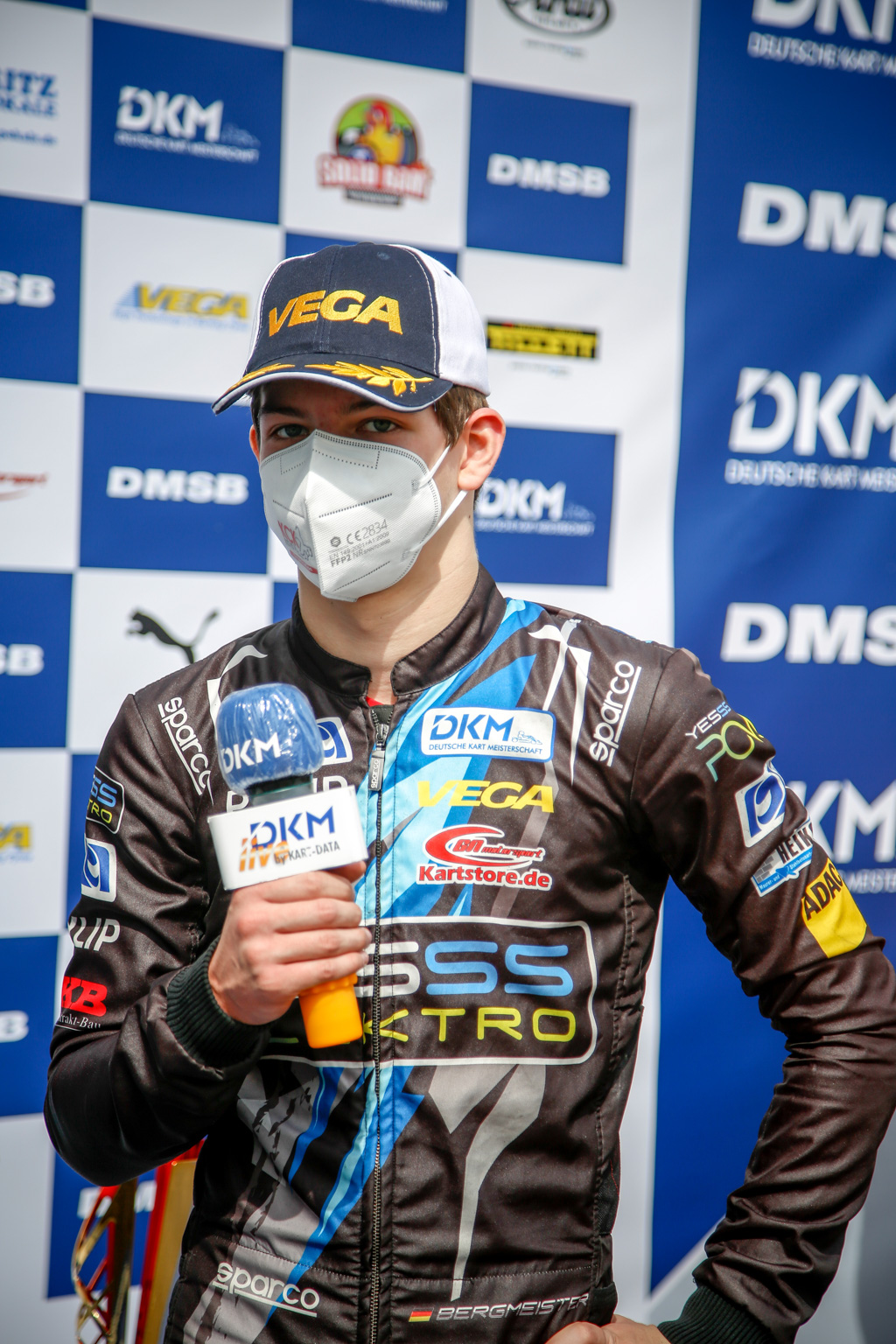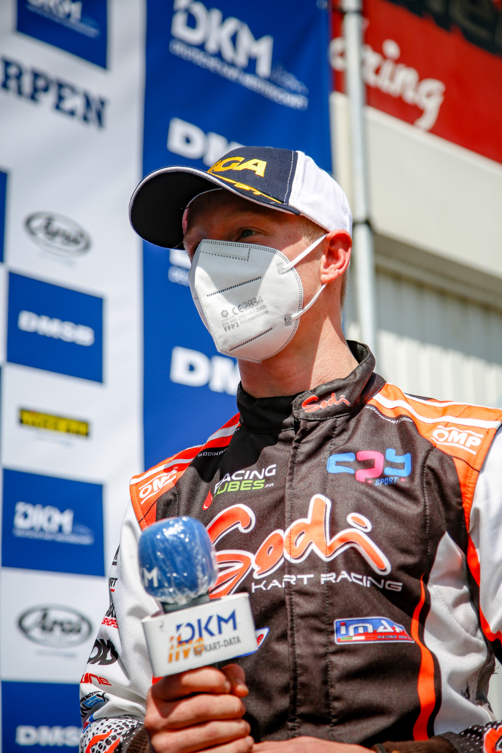 Turbulent wurde es im zweiten Finale. Erneut hatte Bergmeister keinen guten Start und verlor diesmal seine Führung an Imbourg. Der Sodi-Kart-Pilot wusste seine Chance zu nutzen, verteidigte seinen Spitzenplatz bis ins Ziel und ließ sich dabei auch nicht durch eine Slow-Phase aus der Ruhe bringen. „Es war für mich ein gutes Debüt in der DKM. Die Konkurrenz ist sehr stark und es waren zwei harte Rennen. Mein Sieg wäre aber nicht ohne den Support meines Teams im Hintergrund möglich gewesen, dafür vielen Dank“, resümierte Imbourg seinen Erfolg. Hinter ihm gab es dagegen mehrere Verschiebungen: In der letzten Rennhälfte hingen seine Verfolger Ben Dörr (TB Racing Team), Bergmeister und André Walter (Kart Performance Racing) eng zusammen. Letzterer war vom Ende des Feldes ins Rennen gestartet und hatte sich bis in den Spitzenpulk vorgekämpft. An der Wertung änderte sich dagegen nichts mehr – Dörr wurde als Zweiter vor Bergmeister, Karl Louis Kölschbach (SRP Racing Team) und Lukas Scherbinskas (Kart Performance Racing) gewertet. Walter erhielt eine Spoilerstrafe und fiel dadurch aus den Top-Fünf heraus.