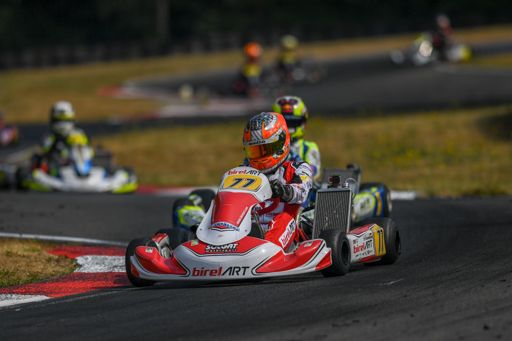 Trotz der schwierigen Ausgangslage zeigte sich Tramnitz gewohnt kämpferisch, als er von Position 18, unter nassen Bedingungen, in den ersten Heat startete und gleich in den ersten Kurven ganze acht Positionen gutmachen konnte. „Ich müsste so ungefähr auf Platz zehn gelegen haben, als mir ein anderer Fahrer hinten ins Heck gefahren ist und mich auf den noch sehr nassen Teil der Strecke gedrängt hat. Dann konnte ich das Kart nicht halten, hab‘ mich ins Kiesbett gedreht und bin hinten in den Reifenstapel eingeschlagen“, lässt er uns nach dem Aus in der ersten Runde wissen. „Jetzt wird es ganz eng, überhaupt noch die Qualifikation für das Finale zu schaffen“, ergänzt er noch im Anschluss. Aber durch einen souverän herausgefahrenen neunten Platz im zweiten Heat, reichte es schließlich doch noch für Startplatz 28 von 34 im Finale.