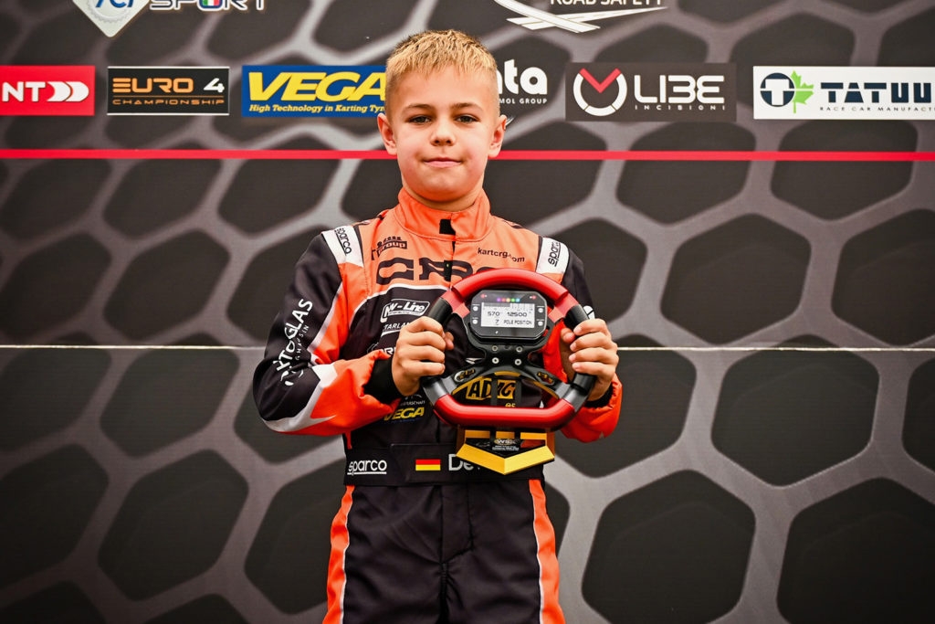 Nur wenige Wochen nach seinem Titelgewinn in der Deutschen Mini-Kart-Meisterschaft zeigte Devin Titz aus Bönen (Kreis Unna) auch auf internationaler Bühne eine starke Vorstellung. Beim Auftakt des prestigeträchtigen WSK Final Cup auf dem Franciacorta Karting Track in Norditalien unterstrich der elfjährige Fahrer aus dem Team CRG Holland seine herausragende Form – mit der Gesamt-Pole-Position im Zeittraining und einem starken Auftritt bis ins Finale.