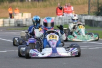 In der Königsklasse setzten die TAD-Teamkollegen Pascal Marschall und Luka Kamali (CRG) wie so oft diese Jahr ein Ausrufezeichen, indem sie sich im Qualifying die ersten beiden Plätze sicherten. Das selbe dominante Szenario lieferte das Duo im ersten Vorlauf ab, bevor der Alleingang im zweiten Heat ein jähes Ende fand. Die Strecke hatte sich aufgrund leichten Nieselregens in eine Rutschbahn verwandelt. Die erschwerten Bedingungen forderten ihren Tribut, was einige Abflüge und Ausritte zur Folge hatte. Die prominentesten Ausfall-Opfer waren Kamali und Marschall, die ihr Kart jeweils in den Reifenstapeln abstellen mussten. Unbeeindruckt davon nutzte Maximilian Fleischmann (Praga) seine Chance. Der Wackersdorf-Sieger gewann den Heat und schob sich damit vor Alessio Curto (CRG) und Marco Göttler (Mach1) auf die Pole-Position für das Prefinale.