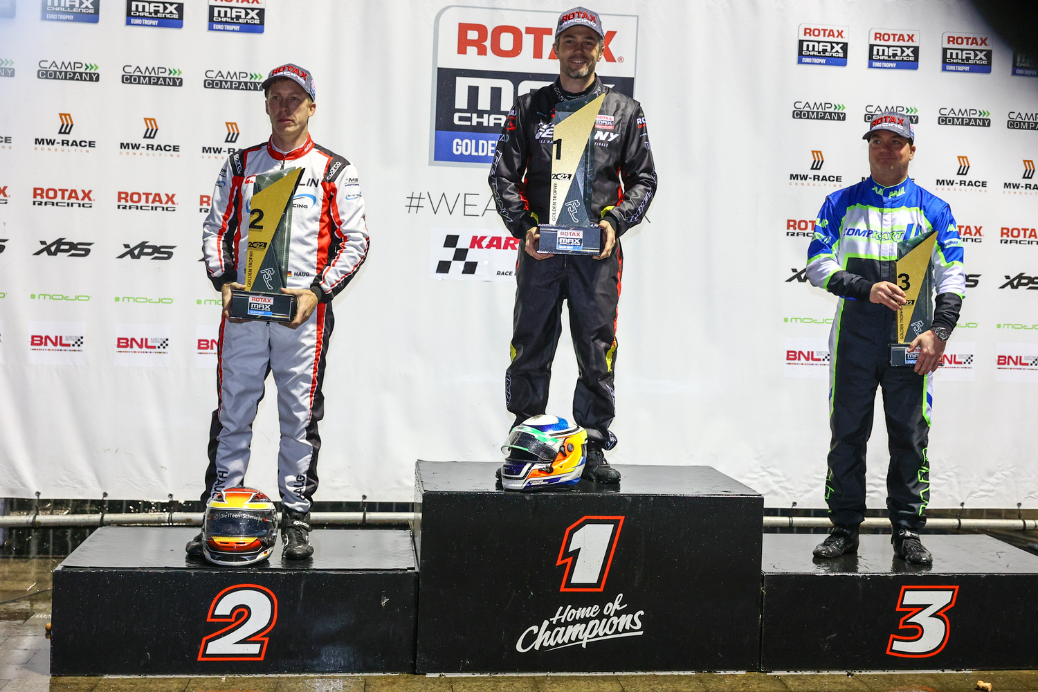 Turbulent verlief anschließend das Finale. Bei starkem Regen gelang Przybylak ein guter Start – doch schnell machte sich Haanen an der Stoßstange des erfahrenen Kartfahrers bemerkbar. Nach wenigen Runden übernahm der SP Motorsport-Schützling die Führung und gab diese bis zum Rennende nicht mehr ab. Als Sieger strahlte der Niederländer somit sowohl über seinen Goldpokal als auch das Ticket für die RMC Grand Finals. „Im Regen habe ich mich auf der Strecke sofort wohlgefühlt. Über die Renndistanz habe ich mir keine Fehler geleistet. Ein riesiger Dank gilt meinem Team für den tollen Support“, so Haanen im Siegerinterview. Carl Borggaard (RS Competition) feierte mit der Rennbestzeit einen Erfolg und mischte letztlich als Zweiter vor Fabian Bock (Woik Motorsport) mit, der nach einer Zeitstrafe Kimbers Position erbte. Der Euro Trophy-Champion lag in den Ergebnislisten somit auf Rang vier, gefolgt von Van Leeuwen als Fünftplatzierter des Events.